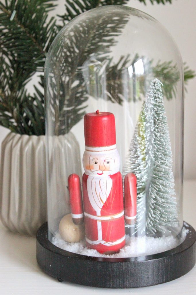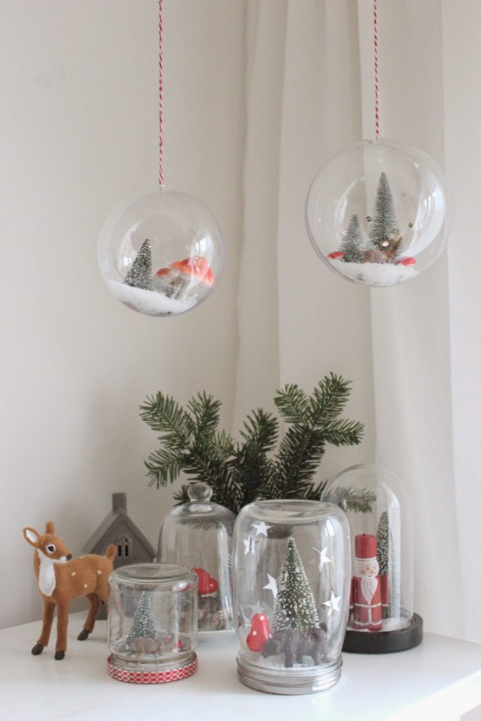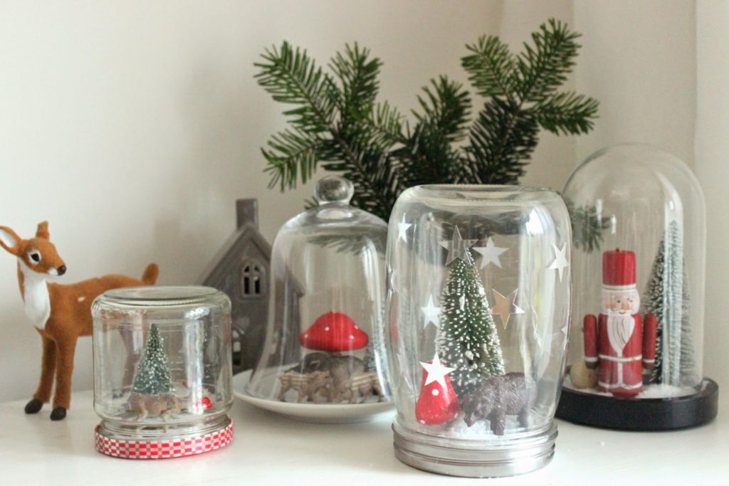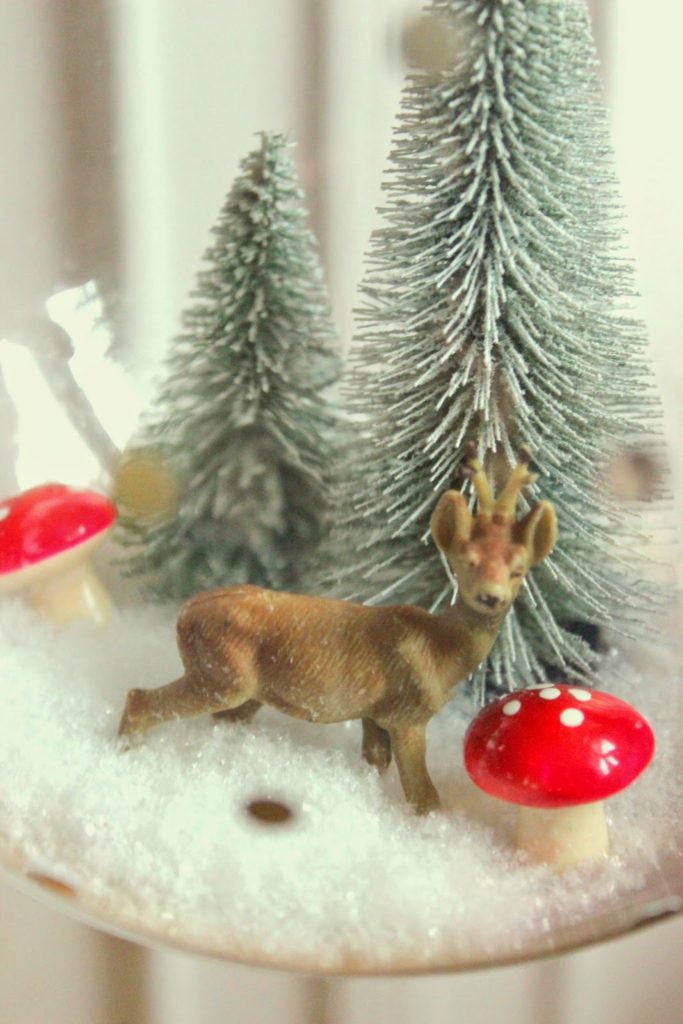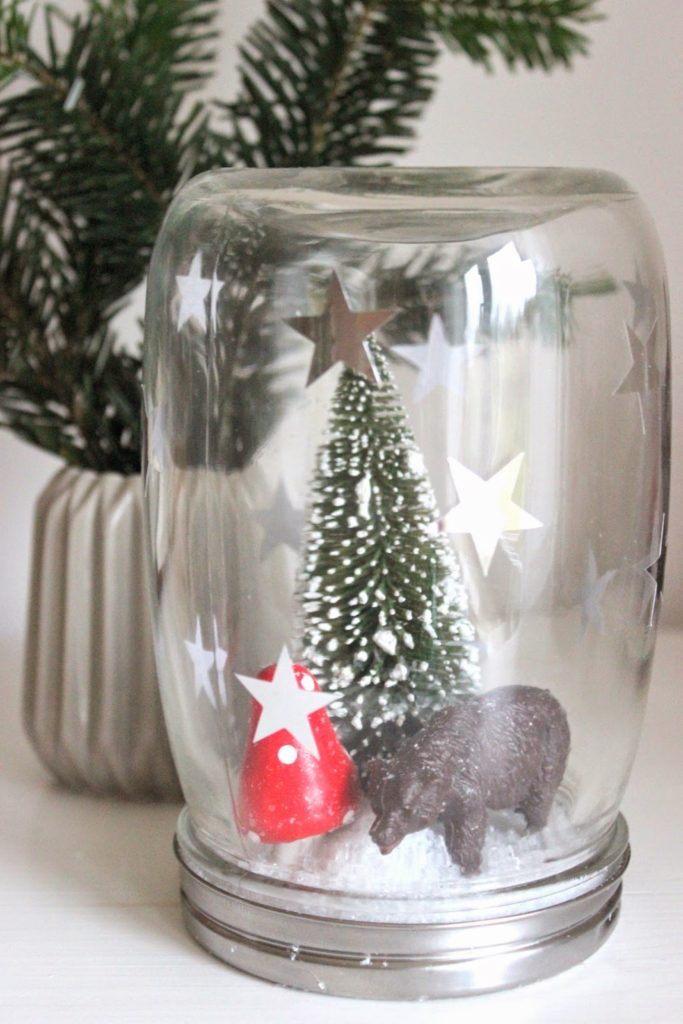 Heute habe ich schon mal angefangen und eine kleine „gläsernde Winterwelt“ gebastelt.