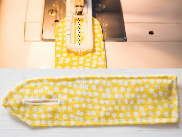 Dies wird oben in der Spitze des Stoffstücks positioniert.