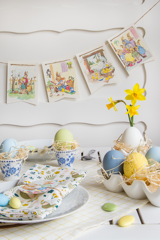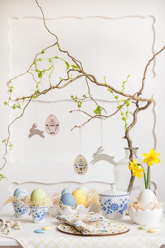 Für die Osterstimmung habe ich zusätzlich mit bunt gefärbten Eiern, Zweigen,