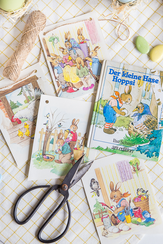 Ich habe einige alte Bücher vom Osterhasen zu Hause,aber mir ist einfach leid darum sie zu zerlegen.Ich verwende gerne Nostalgie Bilder die ich auf Pinterest gesammelt habe.