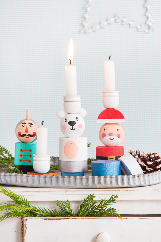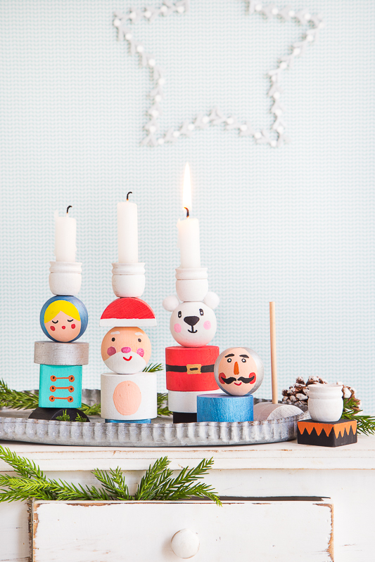 Auch die Kerzenaufsätze können auf den jeweiligen Kopf oder Hut geklebt werden.