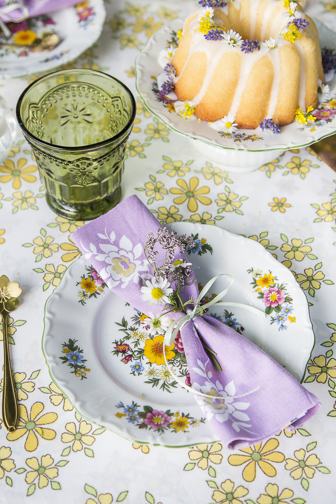 Zitronen Gugelhupf mit essbaren Blüten