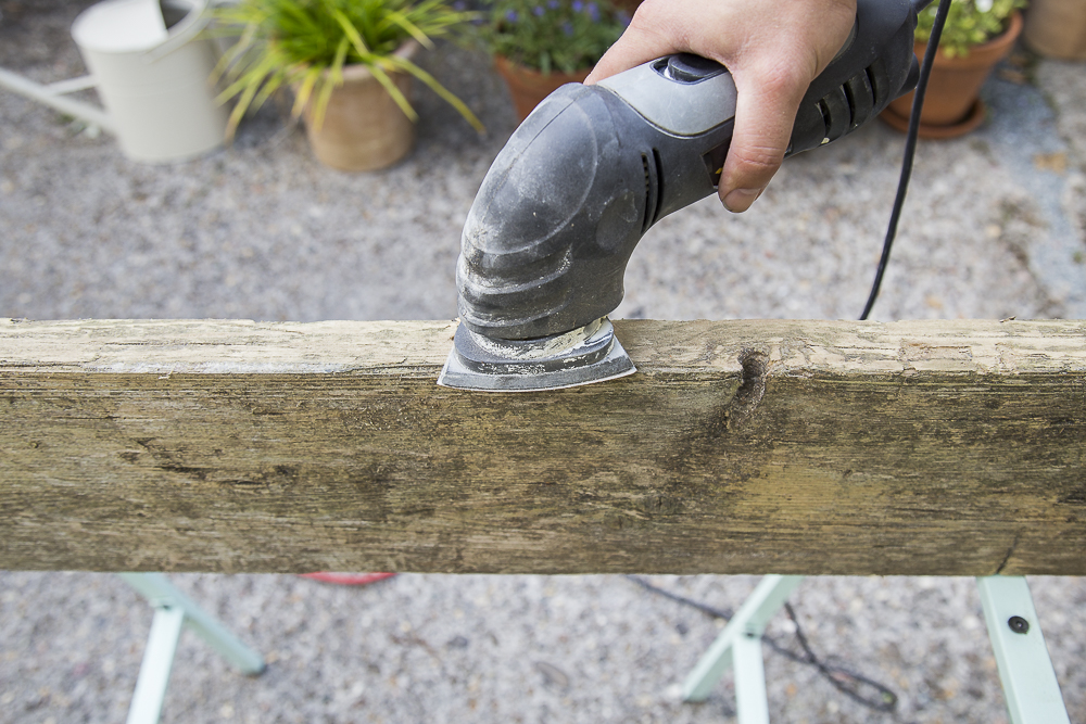 Ganz nach der Beschaffenheit deines Brettes, solltest du es abschleifen und von altem Schmutz und Farbresten befreien.
