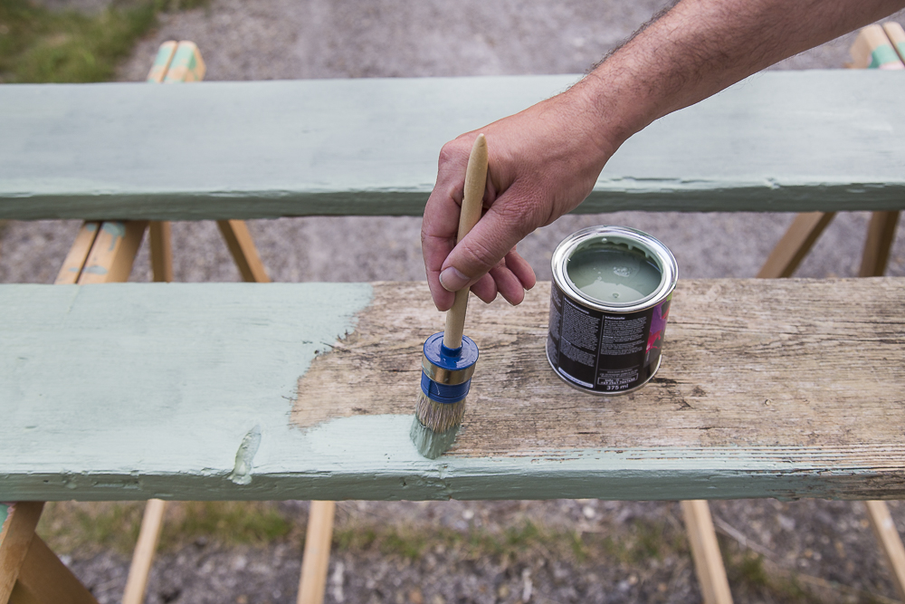 Für eine gleichmäßige Deckkraft, habe ich das Brett zweimal gestrichen.